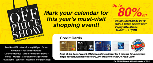 3. Sale event is from September 28 to 30, 2012 at the World Trade Center Tent, Pasay from 10 am to 10 pm